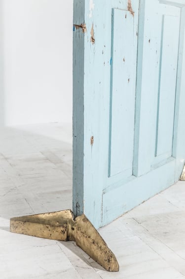 During his stay in Ukraine, Alexandre Henry collected different artefacts carrying traces of the conflict. Here, the human takes the form of the object and testifies to what it may have suffered. On some of these entities, parts are missing. Destroyed by violence and hate. he aim was to repair them, to remodel them, like those Ukrainian families who had to learn to rebuild themselves after having lost everything. By melting Russian missiles and shell casings, Alexandre created prostheses that will replace the missing parts of the objects. The same metal that was used to destroy them will now be used to rebuild them.